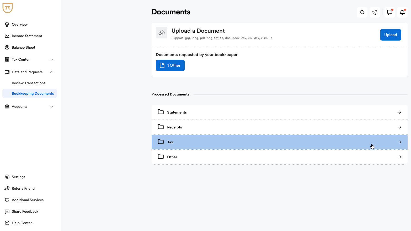 Data and Requests > Bookkeeping Documents > Processed Documents > Tax Folder